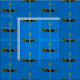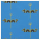 "Azure, a sea serpent ondoyant-emergent sable fimbriated and over all a trident or." Allover pattern of the populace badge for the Barony of Calafia in the Society for Creative Anachronism.