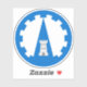 "Argent, on a pile inverted throughout azure a tower argent, within a bordure embattled azure."