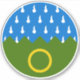 “Per fess azure goutty d'eau and vert, a fess indented to chief in base an annulet or.”