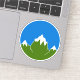 "Azure, a mountain of three peaks issuant from base vert, fimbriated and snowcapped argent."