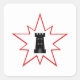 "Argent, a tower sable within a mullet of five greater and five lesser points voided gules."