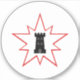 "Argent, a tower sable within a mullet of five greater and five lesser points voided gules."