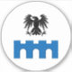 “Argent, in pale a raven displayed sable and a bridge of three spans azure.”