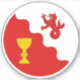 “Per bend wavy argent and gules, a sea-wolf gules and a goblet or.”