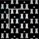 "Sable, two towers and in chief a mullet of three greater and six lesser points argent." Allover pattern of the populace badge for the Barony of Stargate in the Society for Creative Anachronism.