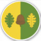 "Per pale or and vert, in fess an acorn inverted proper between two oak leaves counterchanged."