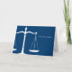 A customised lawyer congratulations card featuring the scales of justice on the front.
