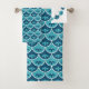 Beautify your bath with this towel set featuring a classic scallop design enhanced by small folk art inspired floral elements in wonderful sea colours of teal, blue and green. All colours on each piece of the set, including the background, may be edited to any hue for a truly custom look.