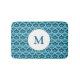 This bath mat features easy to personalise monogram text and a classic scallop design enhanced by small folk art inspired floral elements in wonderful sea colours of teal, blue and green. All colours, including the background, may be edited to any hue for a truly unique look.