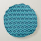 This round monogrammed pillow features a classic scallop design enhanced by small folk art inspired floral elements in wonderful sea colours of teal, blue and green. All colours on both sides, including the background, may be edited to any hue for a truly unique look.