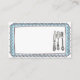 Cute blue scallop frame and darling tableware doodles for simple little placecards. So delightful, just use a marker to write each name on the cards and try a little placecard holder to set them up !