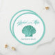 This modern, round Save the Date card features a gorgeous aqua scalloped seashell against a white background & aqua border. Matching products available. TO SEE THE ENTIRE COLLECTION, VISIT: glamprettyweddings.com. Available in 7 glamtastic colours: pink, lilac, aqua, mint blue, yellow, peach, raspberry. Use the "Customise It" button to personalise with your own text. For questions or custom requests, email: cheryl@glamprettyweddings.com/contact. "Scallop Seashell Beach" original design by Cheryl Daniels © 2014.