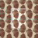 Fabric in a block print pattern, based on a scallop shell, in dark chocolate brown on a beige background
