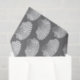 Tissue paper in a block print pattern, based on a scallop shell, in white on a graphite grey / grey background