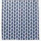 Shower curtain in a block print pattern, based on a scallop shell, in dark navy / indigo blue on a white background