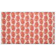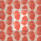 Fabric in a block print pattern, based on a scallop shell, in coral orange on a pastel coral background