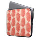 Computer Sleeve in a block print pattern, based on a scallop shell, in coral orange on a pastel coral background