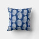 Throw pillow in a block print pattern, based on a scallop shell, in white on a navy blue / indigo background