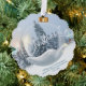 Add a peaceful touch to your holiday gifts with this scalloped-edge ornament card, featuring a serene winter landscape and a graceful white dove.