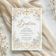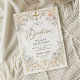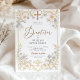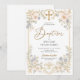 Celebrate your daughter's sacred milestone with this elegant First Holy Communion invitation. Features a delicate scalloped edge, soft gold religious illustrations (cross, candle, chalice), and an oval photo frame. Perfect for traditional, rustic, or modern communion