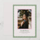 Celebrate your graduate with this Scalloped Graduation Photo Announcement, featuring a charming scalloped frame within a frame that beautifully highlights the graduate’s photo. The design includes a sage green main frame with a soft pink inner frame set against a neutral background, creating a look that is both cute and elegant.