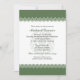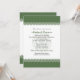 Small Stars of David make up the olive green scalloped edges on the top and bottom borders of this Bar/Bat Mitzvah invitation. Customised information goes in the middle printing against a light green Star of David watermark. The graphic is repeated on the reverse behind extra information which can be customised or deleted to leave the back blank. Available in alternate colours with matching products.