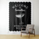 personalized retro bachelorette party tapestry in in black and white with a cocktail glass is perfect as a bachelorette party photo backdrop. Celebrate your bridal shower in style with the perfect cocktail party theme in bold pink, the perfect theme for the nostalgic vintage 70s bride and her bridesmaids.