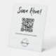 The sign features a sleek design and prominently displays a scannable QR code. The Zazzle tool allows you to generate your own QR code (customise further and replace if you have your own code QR code image).