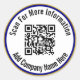 Scan QR Code For Info Navy Blue White and Gold Classic Round Sticker