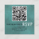 Scan QR code online RSVP stained teal blue wedding enclosure card. Your guests can use this card to online RSVP using the QR code.