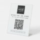 Scan the Qr code to view our wedding menu table sign. You can upload an image of the couple, a logo for the event, or any photo. Minimalist black and white design for a modern wedding reception dinner.
