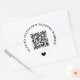 Wedding website QR code sticker in black and white with curved text and a black heart. Cute black and white wedding QR code sticker.