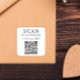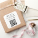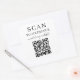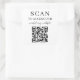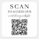 Square wedding website QR code sticker in black and white with elegant fonts.