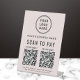 Modern light pink table top pedestal sign for your business featuring 2 QR codes for customers to scan for payments, enabling you to receive payments anytime, anywhere. Upload your logo and QR codes, and add your business name, phone number and street address or other information in simple typography.