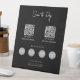 A modern business pedestal sign design showcasing your business payment QR codes, business website and social media handle as well as payment app logos. A minimalist personalised QR code, social media business signs. A simple and professional way to allow your customers to scan, pay, view menus, price lists, make appointments etc. Customise the text and make it your own..