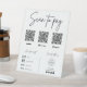 This sleek and modern "Scan to Pay" QR code sign is the perfect way to streamline your customers' payment process. Featuring a clean and professional design, the sign prominently displays multiple QR codes for popular payment apps like Venmo, Cash App, and PayPal, along with icons for other accepted payment methods like cash, credit card, Apple Pay and Google Pay. You can even add your own logo and contact information to create a fully customised and branded look. This versatile sign is ideal for businesses of all sizes and can be easily displayed on a countertop or table.