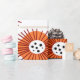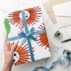 This wrapping paper has a Scandinavian design of minimalist flowers in retro shades of orange and maroon. Bright, colourful, and festive.