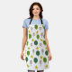 This apron has a Scandinavian repeating design of a forest in brown and shades of green and yellow stars.