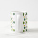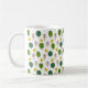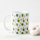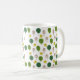 This mug has a Scandinavian repeating design of a forest in brown and shades of green and yellow stars.
