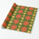 Scandi Retro Floral Pattern Green Orange Ocher Wrapping Paper
