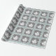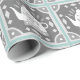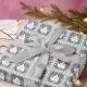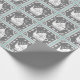 Scandinavian folk art style tile pattern features centre white decorated teapots and aqua graph lines. Tile backgrounds and elements are shades of taupe/grey