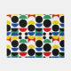 Seamless Repeat Geometric Scandinavian Nordic bauhaus Style Mid century Red, black, yellow, blue and green circles and semi circle shapes Decorative Modern Pattern Design on white background