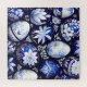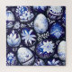 Decorative Easter eggs with elegant floral motifs in rich blue and white tones.