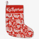 NewParkLane - Christmas Stockings, with a traditional intricate Scandinavian folk art Christmas Pattern of flowers, hearts, Christmas ornaments and birds in red and white, and a text template for your name, for a personalised design.