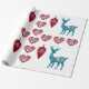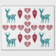 Scandinavian Christmas Hearts Reindeer Red Baubles Wrapping Paper