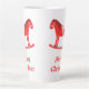 This awesome Christmas latte mug features a digital art image of a cute Scandinavian style rocking horse. The horse is red with a dark red mane, tail and hooves. The friendly horse is smiling. It has a white saddle and reins with pretty red Scandi folk style patterns on the saddle including the sun, moon and stars and hearts and flowers. The base of the rocking horse is red and is covered in pretty white leaves. The design was inspired by the Swedish Dala horse. There is custom text so you can personalise this design with your own message.