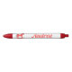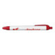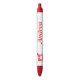This awesome Christmas pen features a digital art image of a cute Scandinavian style rocking horse. The horse is red with a dark red mane, tail and hooves. The friendly horse is smiling. It has a white saddle and reins with pretty red Scandi folk style patterns on the saddle including the sun, moon and stars and hearts and flowers. The base of the rocking horse is red and is covered in pretty white leaves. The design was inspired by the Swedish Dala horse. There is custom text so you can include a name.