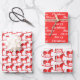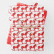 This awesome pack of Christmas wrapping paper sheets features a digital art image of a cute Scandinavian style rocking horse. The horse is red with a dark red mane, tail and hooves. The friendly horse is smiling. It has a white saddle and reins with pretty red Scandi folk style patterns on the saddle including the sun, moon and stars and hearts and flowers. The base of the rocking horse is red and is covered in pretty white leaves. The design was inspired by the Swedish Dala horse. There is custom text so you can include a message on the middle sheet.