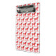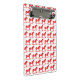 This awesome patterned Christmas mini clipboard features a digital art image of a cute Scandinavian style rocking horse. The horse is red with a dark red mane, tail and hooves. The friendly horse is smiling. It has a white saddle and reins with pretty red Scandi folk style patterns on the saddle including the sun, moon and stars and hearts and flowers. The base of the rocking horse is red and is covered in pretty white leaves. The design was inspired by the Swedish Dala horse.