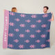 Scandinavian Floral Pattern Blue Pink Monogrammed Fleece Blanket